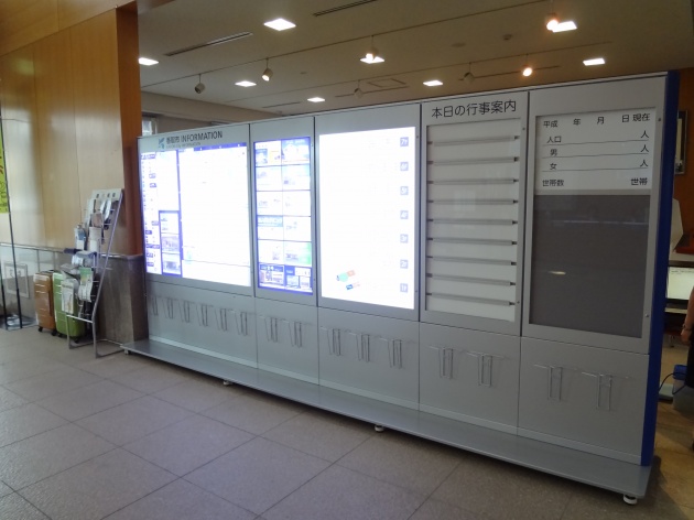 香取市役所 ■サイズ/H.2100×W.4481 ■タイプ/可動式 ■仕様/電照 LED ■コンテンツ/市全図・施設周辺図・庁舎案内・ホワイトボード・パンフレットラック・モバイル対応(ナビタッチ) ■設置日/2013年9月